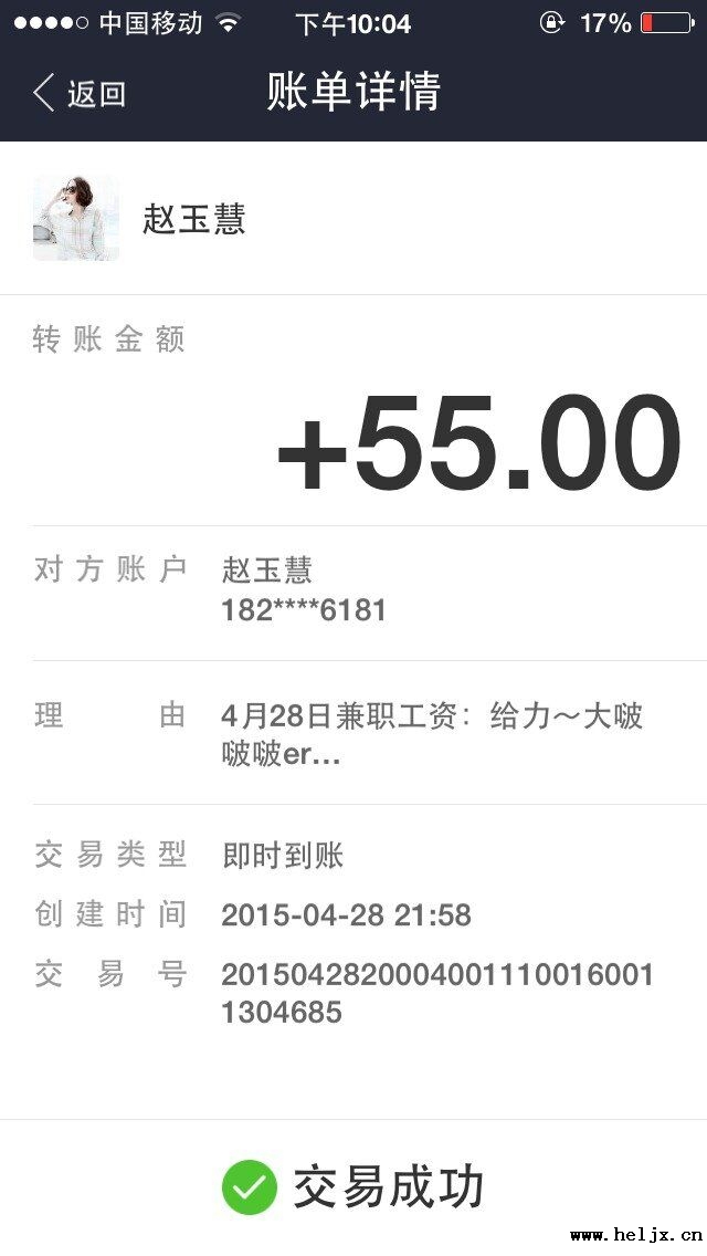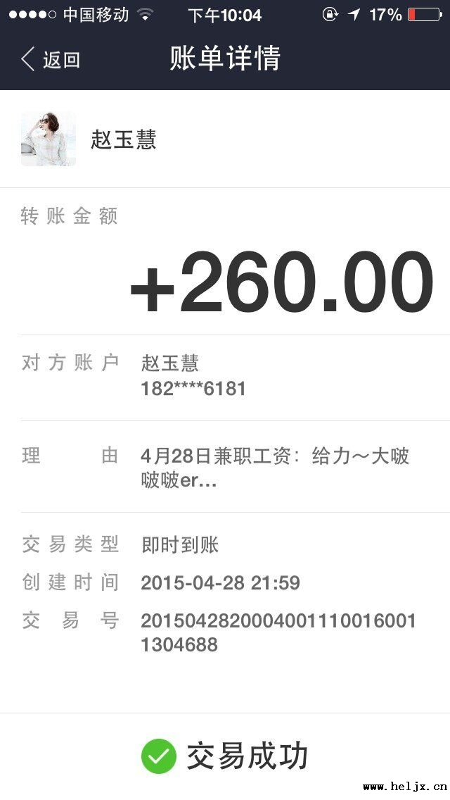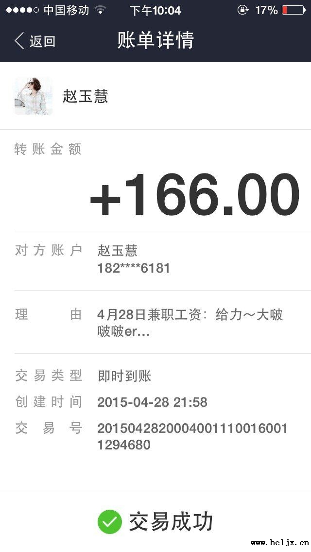晒晒我的4月28日 兼职工资单
