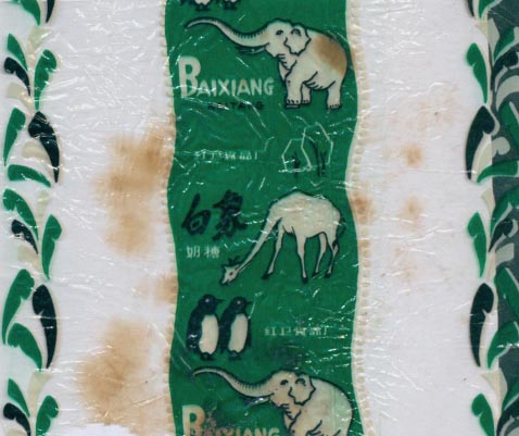 糖纸上的动物-白象-企鹅-长颈鹿-红卫食品厂-绿底