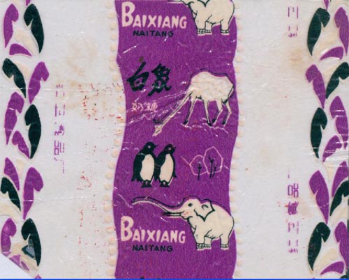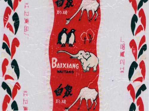 糖纸上的动物-白象-企鹅-长颈鹿-红卫食品厂-红底