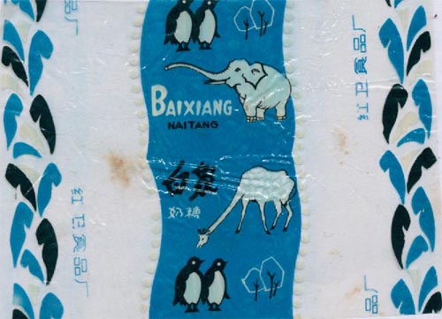 糖纸上的动物-白象-企鹅-长颈鹿-红卫食品厂-蓝底